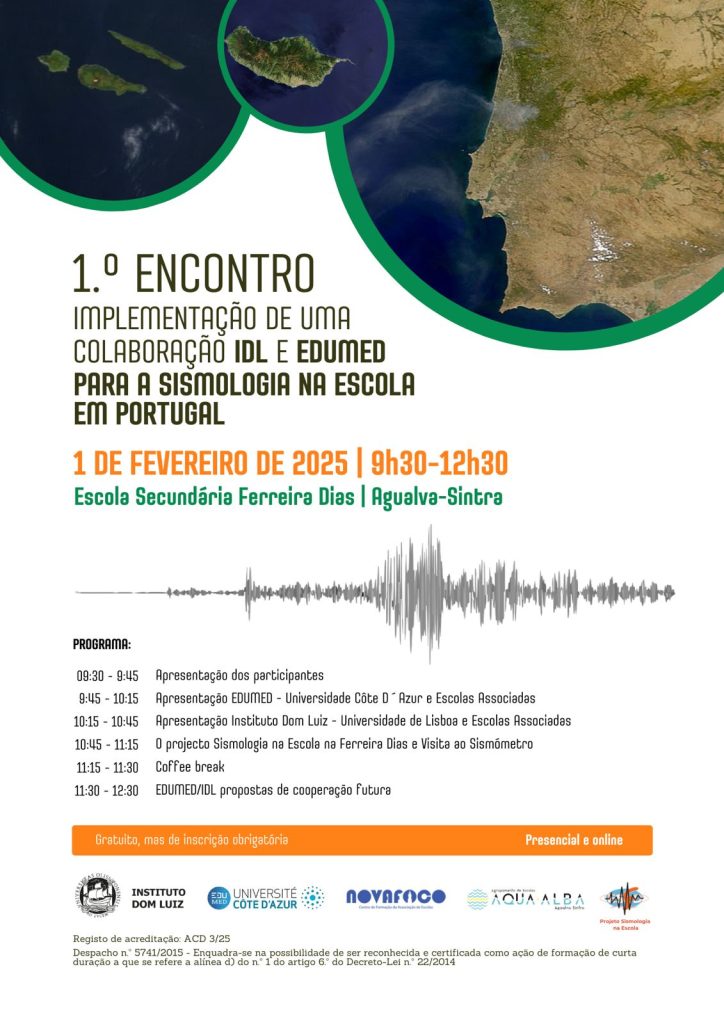 1.º Encontro – Implementação de uma colaboração IDL e EDUMED para a sismologia na escola em Portugal + Adicionar em Google Calendário + iCal/Outlook Etiquetas:sismologia Data 01 Fev 2025 Expirado! Horário 9:30 am - 12:30 pm Local Escola Secundária Ferreira Dias Partilhar